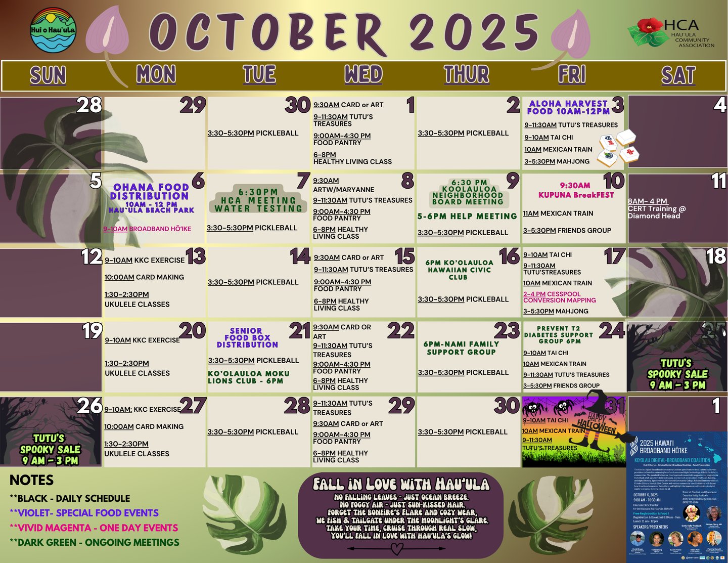 Weekly, Monthly & Ongoing Events for the Ko`olauloa Community